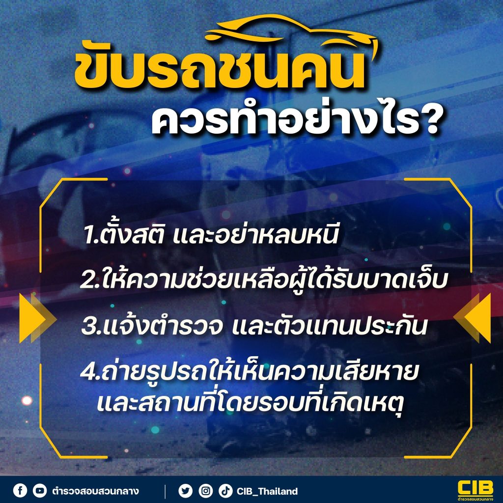 3.แจ้งเจ้าหน้าที่ตำรวจทันที หลังเกิดเหตุแม้จะเป็นอุบัติเหตุเล็กน้อย หรืออีกฝ่ายยอมรับผิดก็ตาม รอพบเจ้าหน้าที่ตำรวจ เพื่อตรวจสอบสถานที่เกิดเหตุ และเดินทางไปลงบันทึกประจำวันที่สถานีตำรวจ หากรถมีประกันให้แจ้งตัวแทนบริษัทประกันภัยด้วย
