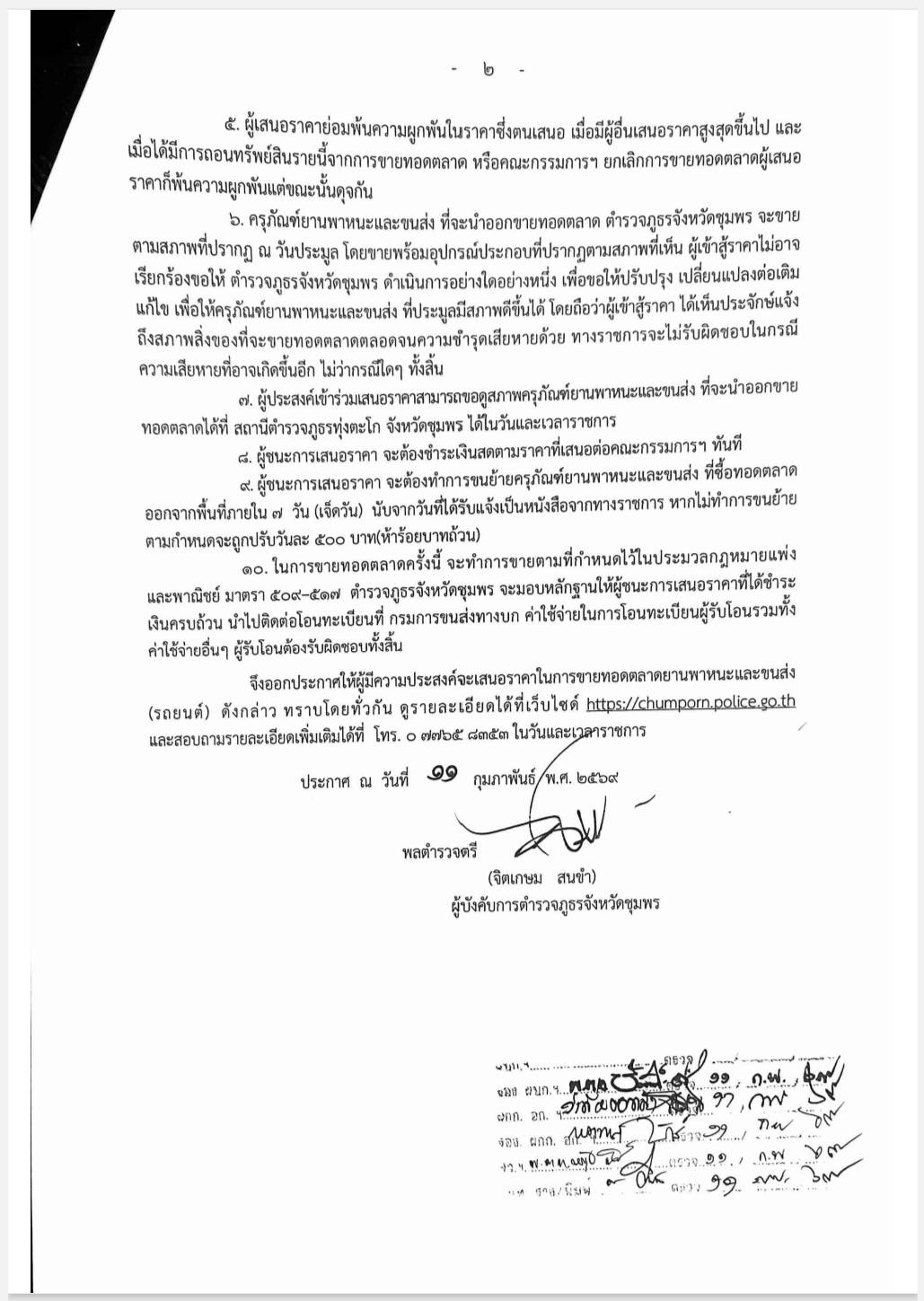 ตำรวจภูธรจังหวัดชุมพร มีความประสงค์จะขายทอดตลาดครุภัณฑ์ยานพาหนะและขนส่งของทางราชการ รถยนต์ จำนวน 4 คัน , รถจักรยานยนต์ จำนวน 2คัน ของ สถานีตำรวจภูธรทุ่งตะโก ตามเอกสารแนบท้ายประกาศนี้