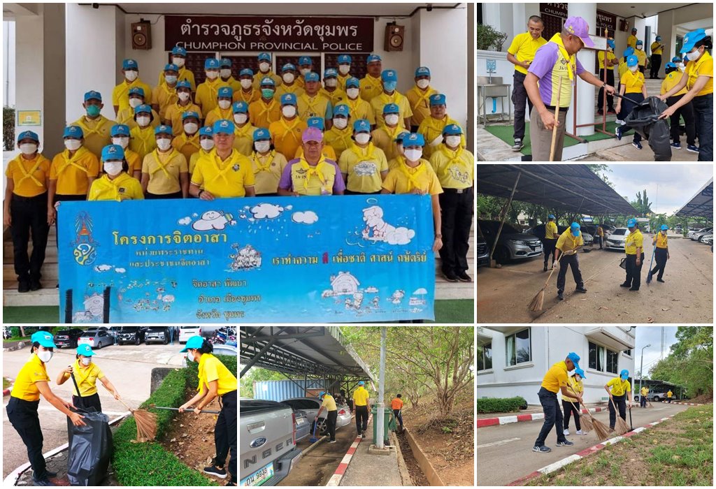 1 มิ.ย.66 เวลา 14.00 น. พล.ต.ต.จารุต ศรุตยาพร ผบก.ภ.จว.ชุมพร พร้อมด้วย พ.ต.อ.จิตเกษม สนขำ รอง ผบก.ฯ (จอส.904), พ.ต.ท.หญิง ภิญญดา มหาทรัพย์ รอง ผกก.ฝอ.ฯ, พ.ต.ท.หญิง วิภา เมฆมูสิก รอง ผกก.ฝอ.ฯ และ ข้าราชการตำรวจในสังกัด ภ.จว.ชุมพร ร่วมกันจัดกิจกรรม “จิตอาสาพัฒนาทำความสะอาด ปรับภูมิทัศน์สถานที่ราชการ บ้านพักข้าราชการ” ณ อาคาร ภ.จว.ชุมพร และบริเวณโดยรอบอาคาร เนื่องในโอกาสวันเฉลิมพระชนมพรรษา สมเด็จพระนางเจ้าสุทิดา พัชรสุธาพิมลลักษณ พระบรมราชินี 3 มิถุนายน 2566