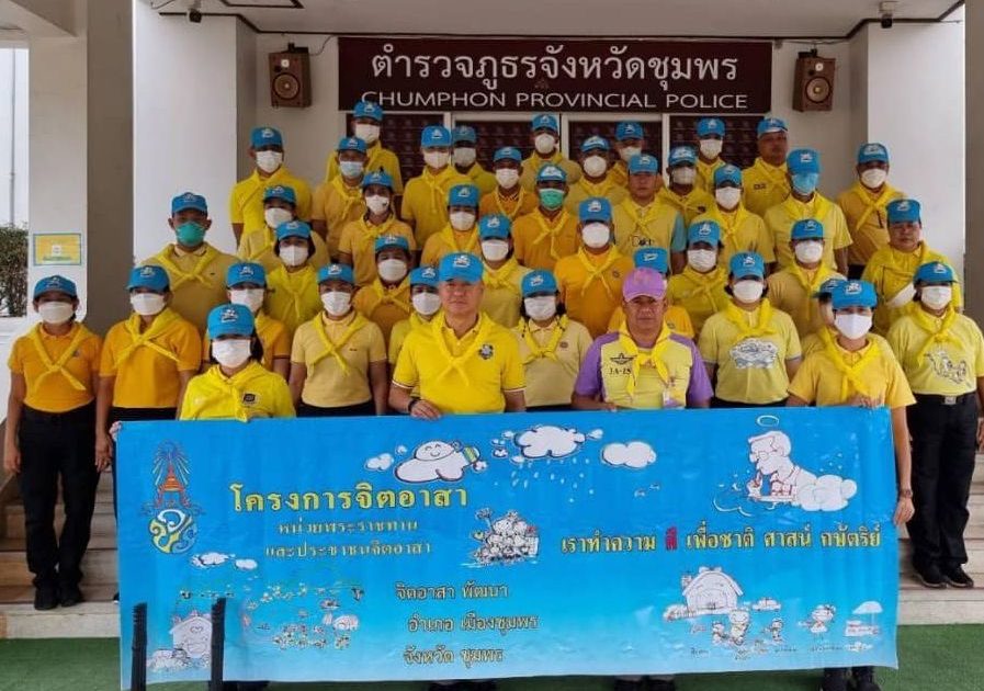 1 มิ.ย.66 เวลา 14.00 น. พล.ต.ต.จารุต ศรุตยาพร ผบก.ภ.จว.ชุมพร พร้อมด้วย พ.ต.อ.จิตเกษม สนขำ รอง ผบก.ฯ (จอส.904), พ.ต.ท.หญิง ภิญญดา มหาทรัพย์ รอง ผกก.ฝอ.ฯ, พ.ต.ท.หญิง วิภา เมฆมูสิก รอง ผกก.ฝอ.ฯ และ ข้าราชการตำรวจในสังกัด ภ.จว.ชุมพร ร่วมกันจัดกิจกรรม “จิตอาสาพัฒนาทำความสะอาด ปรับภูมิทัศน์สถานที่ราชการ บ้านพักข้าราชการ” ณ อาคาร ภ.จว.ชุมพร และบริเวณโดยรอบอาคาร เนื่องในโอกาสวันเฉลิมพระชนมพรรษา สมเด็จพระนางเจ้าสุทิดา พัชรสุธาพิมลลักษณ พระบรมราชินี 3 มิถุนายน 2566