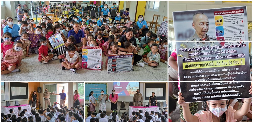 วันที่ 31 พ.ค.66 เวลา 10.00 -12.00 น. ภายใต้อำนวยการของ พ.ต.อ.ชนินทร์ ณรงค์น้อย ผกก.สภ.ละแม นำโดยพ.ต.ท.จเร ชูแก้ว รอง ผกก.ป.สภ.ละแม,พ.ต.ท.ศุภณัฐ นุรักษ์ สว.ธร.สภ.ละแม พร้อมด้วย ร.ต.อ.หญิง รัชนา หนูน้อย รอง สว.ธร.สภ.ละแม,ร.ต.ต.กิตติเดช ทองหลิ่ม รอง สว.(ป.)สภ.ละแม,ร.ต.ต.สิทธิพร เครือจันทร์ รอง สว.ป.สภ.ละแม,ด.ต.สันติ คงคล้าย ผบ.หมู่(ป.)สภ.ละแม ได้เข้าบรรยายให้ความรู้ การหนี ซ่อน สู้ หากมีกรณีเหตุการณ์คนร้ายกราดยิงในสถานศึกษาให้กับนักเรียนโรงเรียนเอื้ออำพน ตั้งแต่ระดับอนุบาล – ประถมศึกษา โดยได้พบกับ น.ส.สุภัคกมล ชินวงค์ ศึกษาธิการ จ.ชุมพร,น.ส.ปองชนก เอื้ออำพน รอง ผอ.โรงเรียนเอื้ออำพน และคณะครูอาจารย์