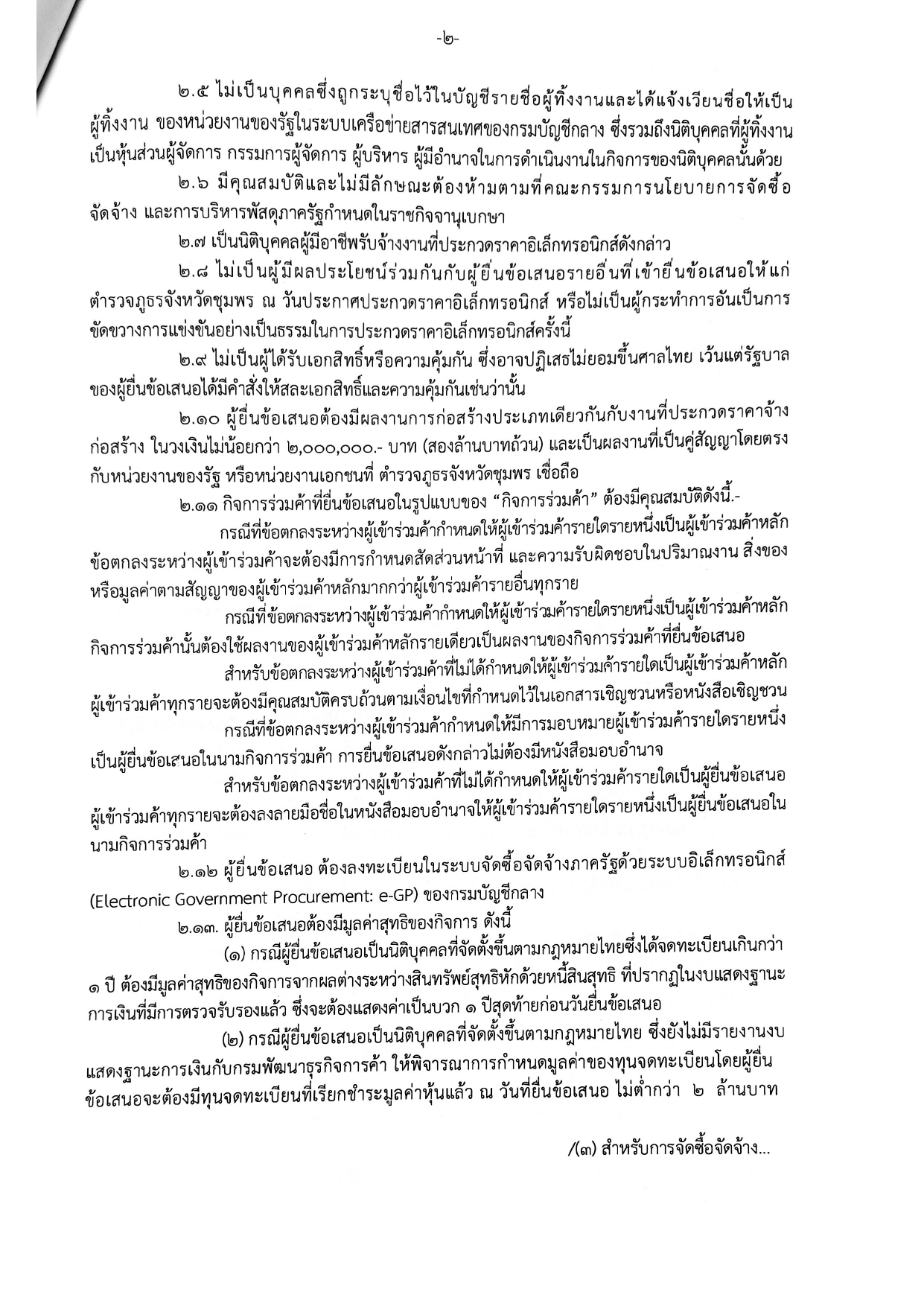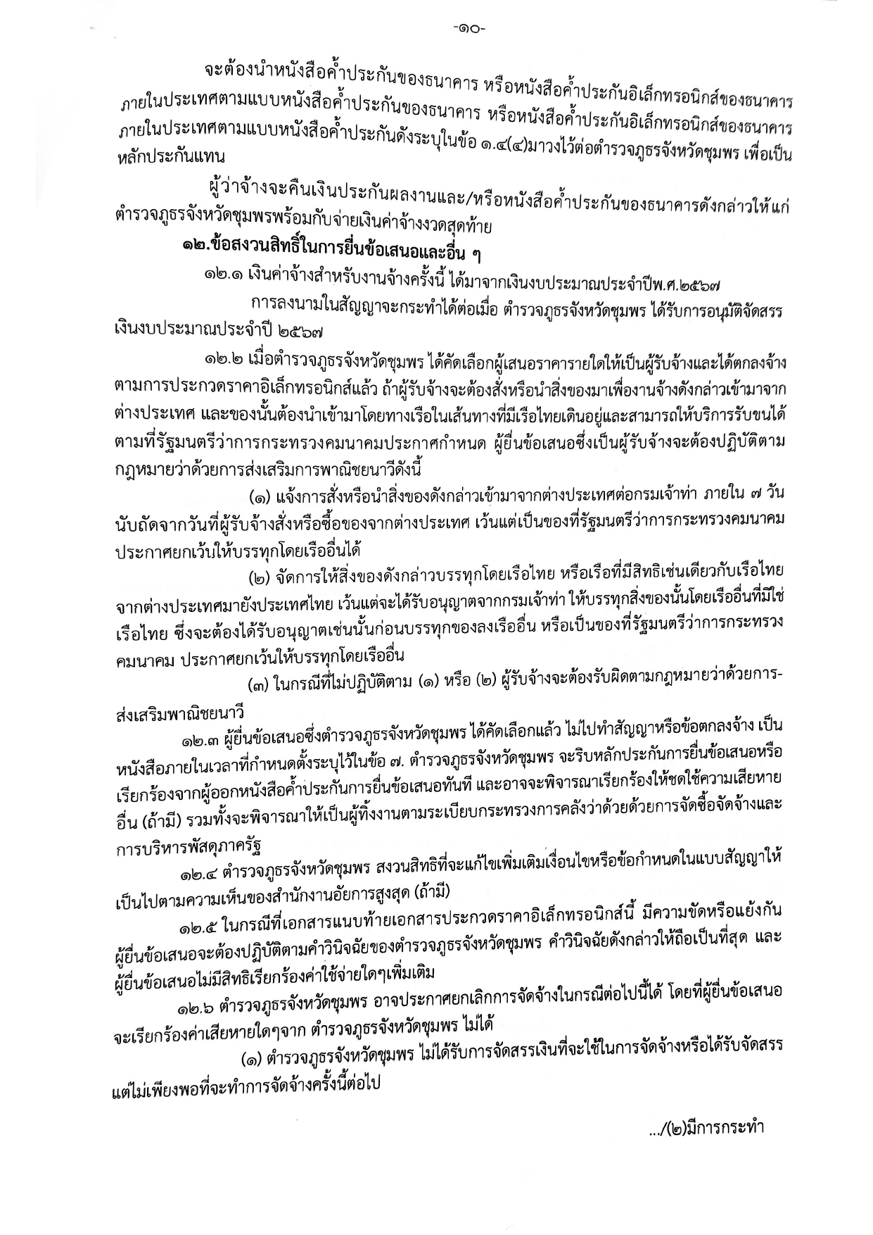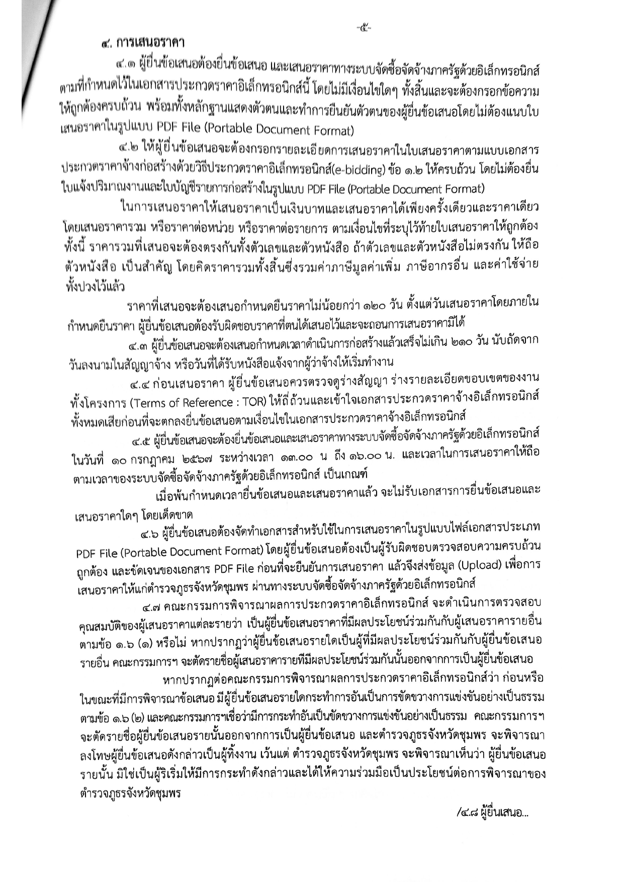 ตำรวจภูธรจังหวัดชุมพร มีความประสงค์จะประกวดราคาจ้างก่อสร้างเรือนแถวชั้นประทวน สภ.ท่าแซะ ด้วยวิธีประกวดราคาทางอิเล็กทรอนิกส์ (e-bidding) รายละเอียดตามเอกสาร