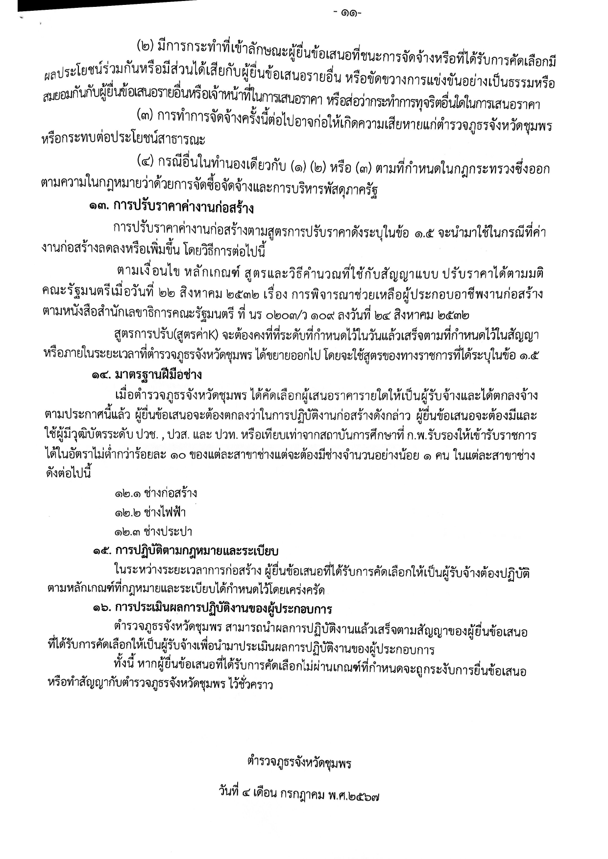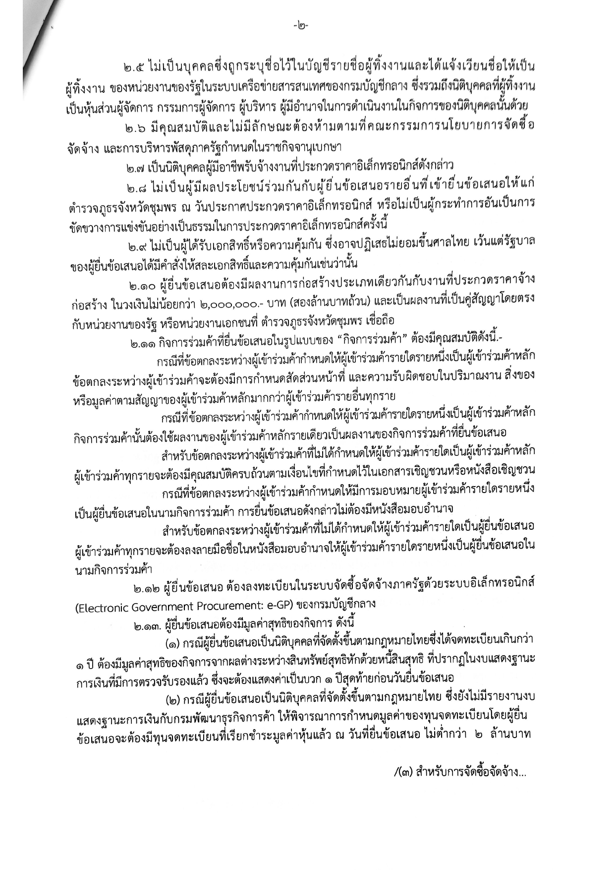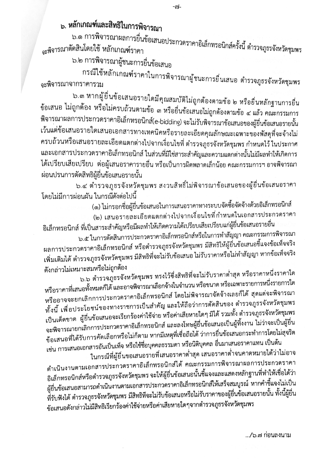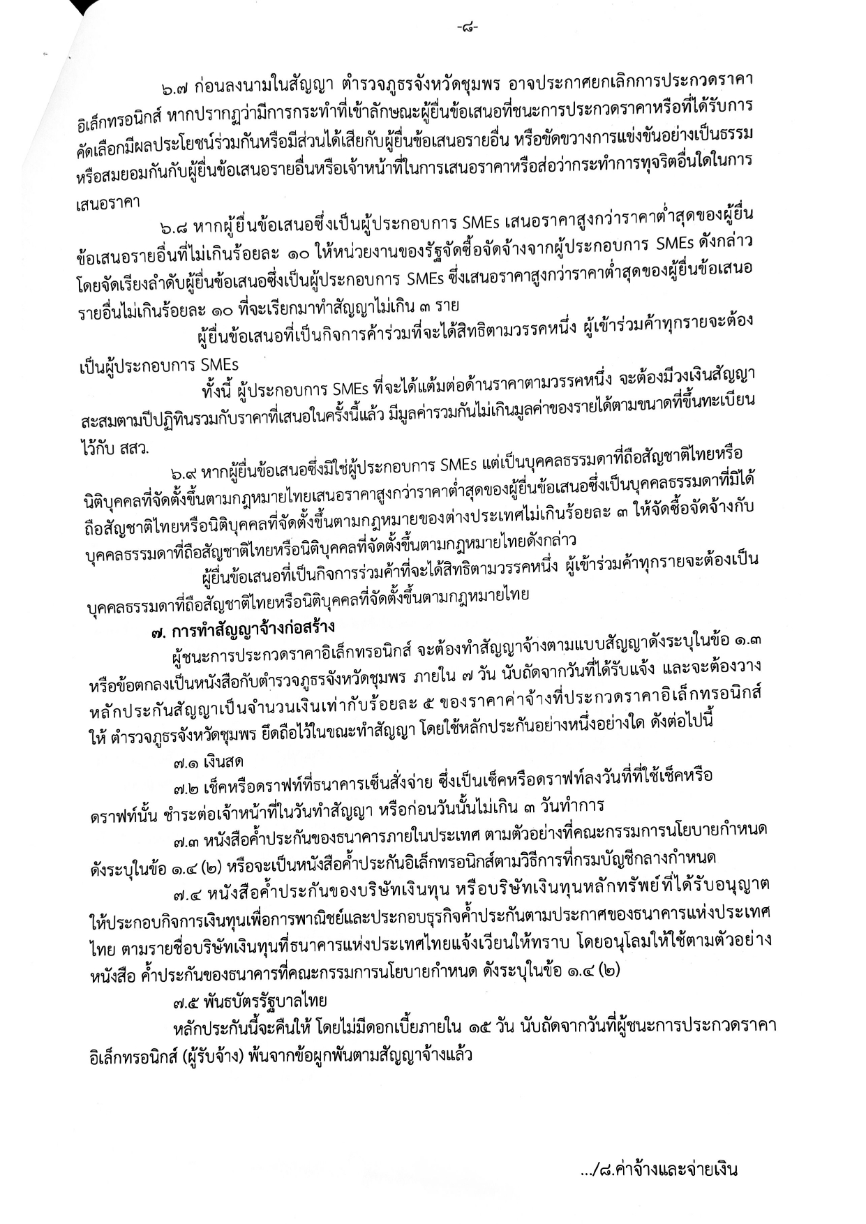 ตำรวจภูธรจังหวัดชุมพร มีความประสงค์จะประกวดราคาจ้างก่อสร้างเรือนแถวชั้นประทวน สภ.ท่าแซะ ด้วยวิธีประกวดราคาทางอิเล็กทรอนิกส์ (e-bidding) รายละเอียดตามเอกสาร