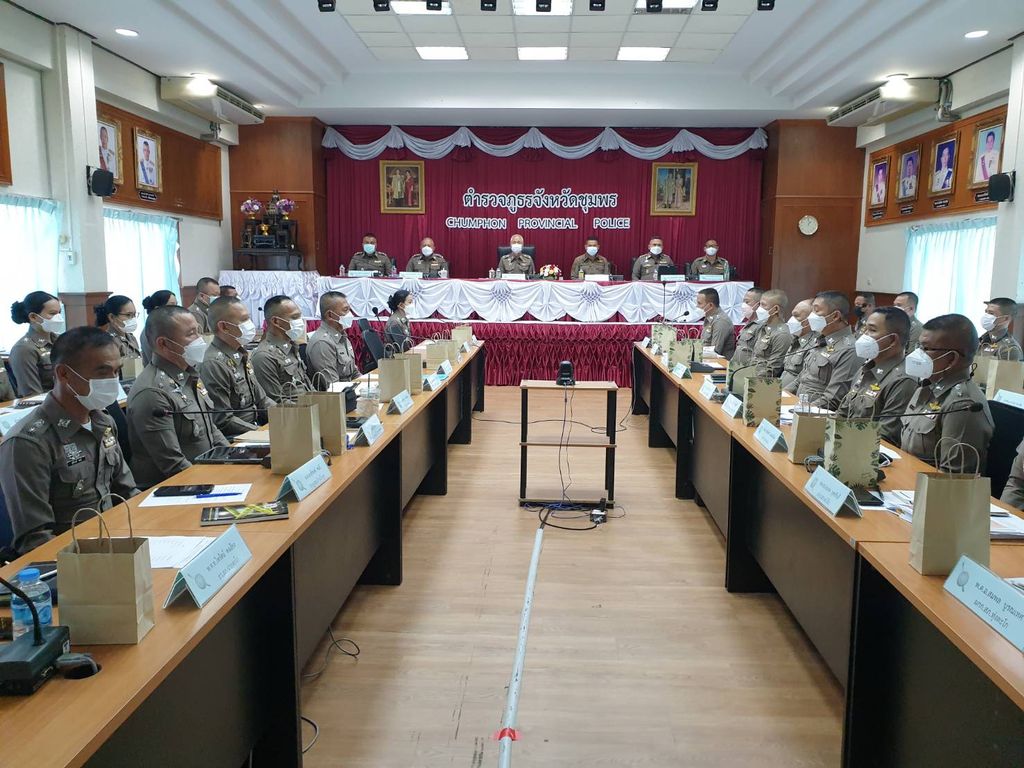 วันที่ 26 ต.ค.65 เวลา 13.00 น. พล.ต.ต.จารุต ศรุตยาพร ผบก.ภ.จว.ชุมพร เป็นประธานการประชุมบริหารประจำเดือนโดยมี พ.ต.อ.ประสิทธิ์ศักดิ์ ศรีสุข รอง ผบก.ภ.จว.ชุมพร,พ.ต.อ.จิตเกษม สนขำ รอง ผบก.ภ.จว.ชุมพร,พ.ต.อ.เสกสิทธิ์ สุวรรณฤทธิ์ รอง ผบก.ภ.จว.ชุมพร,พ.ต.อ.สัณฑภวิษย์ มากช่วย รอง ผบก.ภ.จว.ชุมพร,พ.ต.อ.คมกฤษ ศรีผ่องงาม รอง ผบก.อ.ภ.8 รรท.รอง ผบก.ภ.จว.ชุมพร , พ.ต.อ.ธานี นาคหกวิค ผกก.สส.ภ.จว.ชุมพร,พ.ต.อ.จิโรจน์ สาธุการ ผกก.สอบสวน ภ.จว.ชุมพร,รอง ผกก.ฝอ.ฯ,สว.ฝอ. ทุกแผนกงาน,หน.สภ. ทั้ง 16 สภ.,ตชด.,ทางหลวง,พิสูจน์หลักฐาน,สันติบาล,ตำรวจท่องเที่ยว,ด่านตรวจยานพาหนะ,ตำรวจตรวจคนเข้าเมือง ร่วมประชุม ณ ห้องประชุม ภ.จว.ชุมพร
