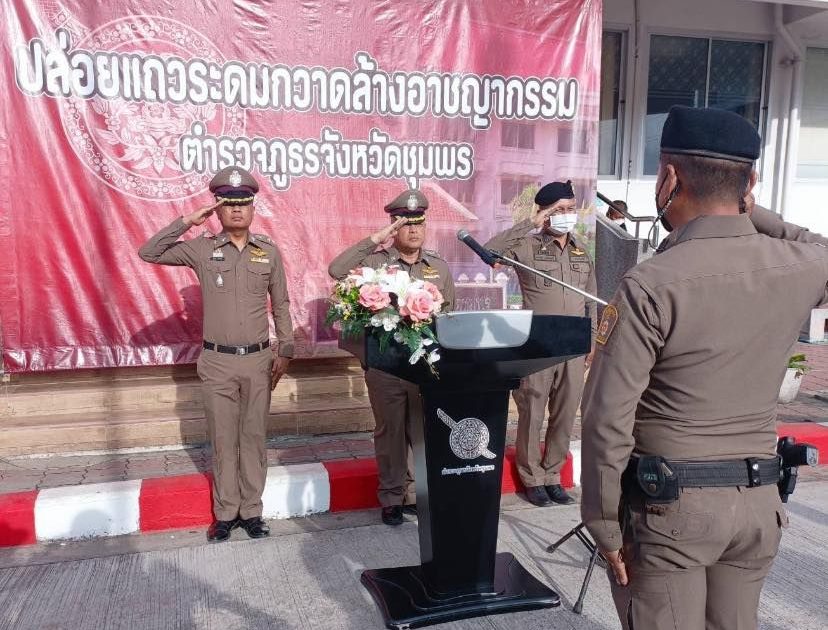 วันที่ 3 พ.ค.66 เวลา 17.00 น. พ.ต.อ.ประสิทธิ์ศักดิ์ ศรีสุข รอง ผบก.ฯ รรท.ผบก.ภ.จว.ชุมพร เป็นประธานในพิธีปล่อยแถวระดมกวาดล้างอาชญากรรม ช่วงก่อนการเลือกตั้ง สส. ปี 2566 ภ.จว.ชุมพร ระหว่างวันที่ 4 -13 พ.ค.66 โดยมี ผกก.ฝอ.ภ.จว.ชุมพร, ผกก.สภ.เมืองชุมพร, ปากน้ำชุมพร, ตชด.41, ตม.ชุมพร, ตำรวจท่องเที่ยว, ตำรวจน้ำ, ตำรวจทางหลวง, ชุดเก็บกู้วัตถุระเบิด และข้าราชการตำรวจในสังกัดตำรวจภูธรจังหวัดชุมพร รวม 90 นาย เข้าร่วม ณ บริเวณลานหน้าอาคารที่ทำการสถานีตำรวจภูธรเมืองชุมพร