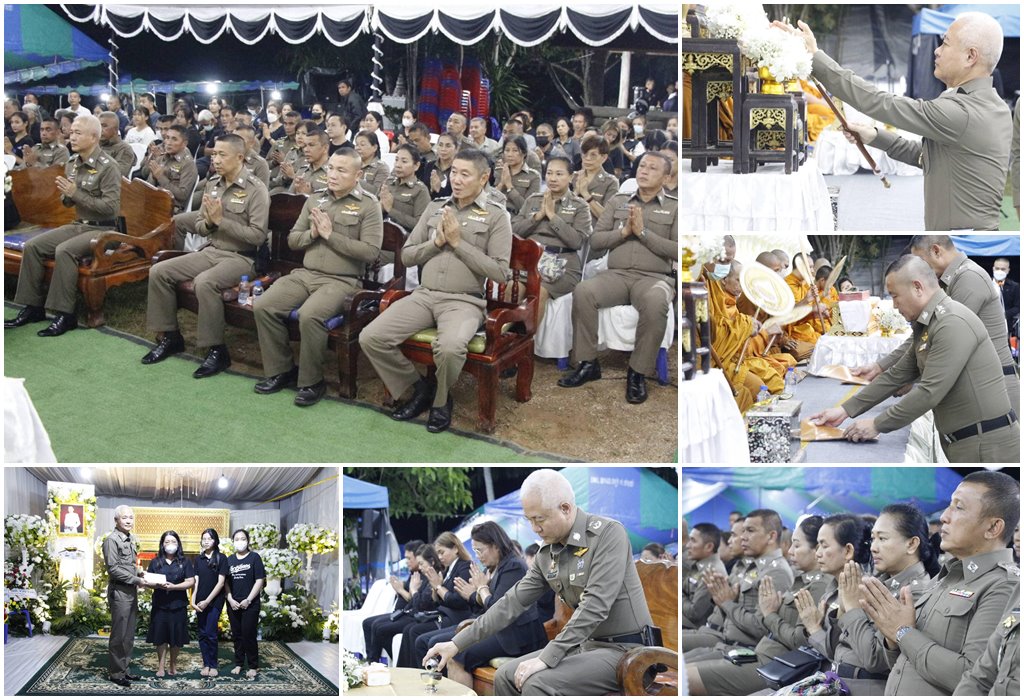 วันที่19 ก.ค.66 เวลา 19.30 น. พล.ต.ต.จารุต ศรุตยาพร ผบก.ภ.จว.ชุมพร พร้อมด้วย พ.ต.อ.ชัยฤทธิ์ ศรีวารีรัตน์ รอง ผบก.ภ.จว.ชุมพร, พ.ต.อ.นิรันดร์ กันจู รอง ผบก.ภ.จว.ชุมพร และข้าราชการตำรวจในสังกัด ร่วมเป็นเจ้าภาพสวดพระอภิธรรม ร.ต.อ.นพชัย เกื้อบุญแก้ว รอง สว.(สอบสวน) สภ.บ้านมาบอำมฤต ณ บ้านเลขที่ 226 หมู่ที่ 9 ต.ท่าแซะ อ.ท่าแซะ จ.ชุมพร