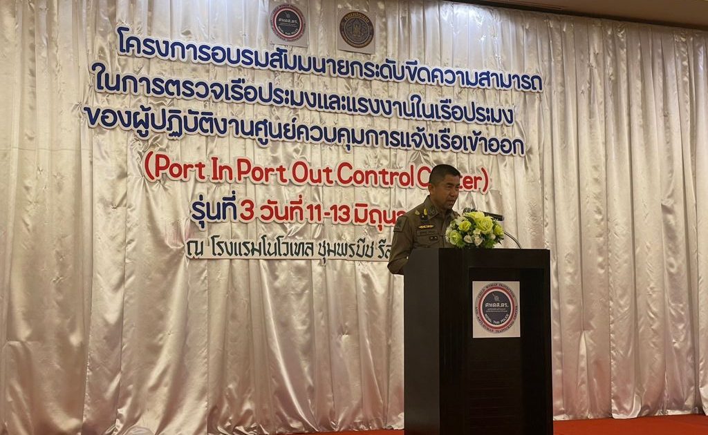 วันที่ 12 มิ.ย.66 เวลา 16.30 น. พล.ต.อ.สุรเชษฐ์ หักพาล รอง ผบ.ตร./ผอ.ศพดส.ตร. พร้อมด้วย พล.ต.ท.พนัญชัย ชื่นใจธรรม ผู้ทรงคุณวุฒิพิเศษ ตร./ผู้ช่วย ผอ.ศพดส.ตร.,พล.ต.ต.ภพพล จักกะภาก ผบก.อก.ทท.,พล.ต.ต.จารุต ศรุตยาพร ผบก.ภ.จว.ชุมพร และเจ้าหน้าที่ผู้เกี่ยวข้อง ร่วมเปิดโครงการอบรมสัมมนายกระดับขีดความสามารถในการตรวจเรือประมงและแรงงานในเรือประมงของผู้ปฏิบัติงานศูนย์ควบคุมการแจ้งเรือเข้าออก (Port In Port Out Control Center : PIPO) รุ่นที่ 3 ณ โรงแรมโนโวเทล ชุมพรบีช รีสอร์ท จ.ชุมพร