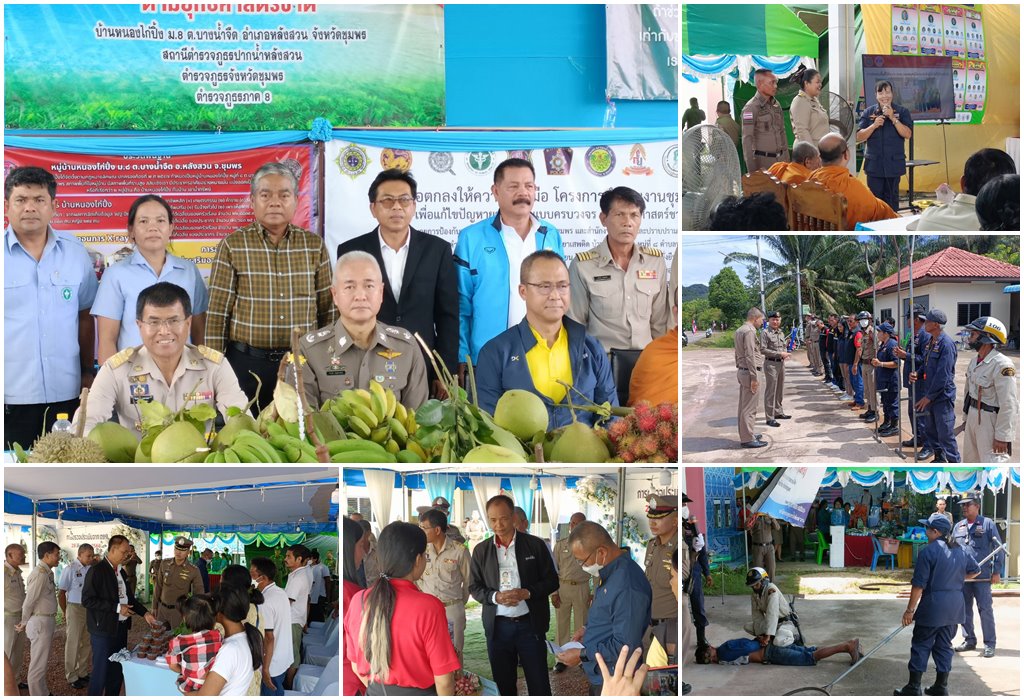 วันที่ 28 ส.ค.66 เวลา 11.00 น. พล.ต.ท.บุญจันทร์ นวลสาย ที่ปรึกษา ตร.หัวหน้าคณะประเมินผลโครงการดำเนินงานชุมชนยั่งยืนฯ, พล.ต.ท.นพดล ศรสำราญ ผู้ทรงคุณวุฒิพิเศษ ตร. รรท.รอง ผบช.ปส. และคณะฯ ลงพื้นที่บ้านหนองไก่ปิ้ง หมู่ที่ 8 ต.บางน้ำจืด อ.หลังสวน จ.ชุมพร เพื่อตรวจประเมินโครงการชุมชนยั่งยืนเพื่อแก้ไขปัญหายาเสพติดแบบครบวงจร ตามยุทธศาสตร์ชาติ ประจำปี 2566 ระดับประเทศ โดยมี พล.ต.ต.พีรยุทธ การะเจดีย์ รอง ผบช.ภ.8,พล.ต.ต.จารุต ศรุตยาพร ผบก.ภ.จว.ชุมพร, พ.ต.อ.ชัยฤทธิ์ ศรีวารีรัตน์ รอง ผบก.ภ.จว.ชุมพร , พ.ต.อ.วิษณุ สุระวดี ผกก.สภ.ปากน้ำหลังสวน ชุดปฏิบัติการชุมชนยั่งยืนฯ ผู้ใหญ่บ้านหมู่ที่ 8 ภาคีเครือข่ายที่เกี่ยวข้อง ร่วมให้การต้อนรับและให้ข้อมูลการดำเนินงานโครงการชุมชนยั่งยืนเพื่อแก้ไขปัญหายาเสพติดแบบครบวงจร ของบ้านหนองไก่ปิ้ง การตรวจประเมินเป็นไปด้วยความเรียบร้อย