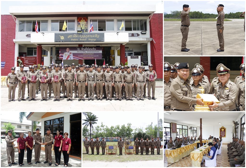 วันที่ 12 ก.ค.66 เวลา 11.40 น. พล.ต.อ.วิสนุ ปราสาททองโอสถ จตช., พล.ต.ท.วันไชย เอกพรพิชญ์ จตร., พล.ต.ท.อิทธิพล อัจฉริยะประดิษฐ์ ผบช.สพฐ., พล.ต.ต.สุนทร เฉลิมเกียรติ รอง ผบช.ตชด. เดินทางมาตรวจราชการ มอบสิ่งของบำรุงขวัญเพื่อสร้างขวัญกำลังใจให้แก่ข้าราชการตำรวจ และมอบพระนิรันตรายแก่ สภ.ปะทิว โดยมี พล.ต.ต.จารุต ศรุตยาพร ผบก.ภ. จว.ชุมพร, รอง ผบก.ฯ, ผกก.สภ.ปะทิว และเจ้าหน้าที่ตำรวจ สภ.ปะทิว ร่วมให้การต้อนรับฯ ณ สถานีตำรวจภูธรปะทิว