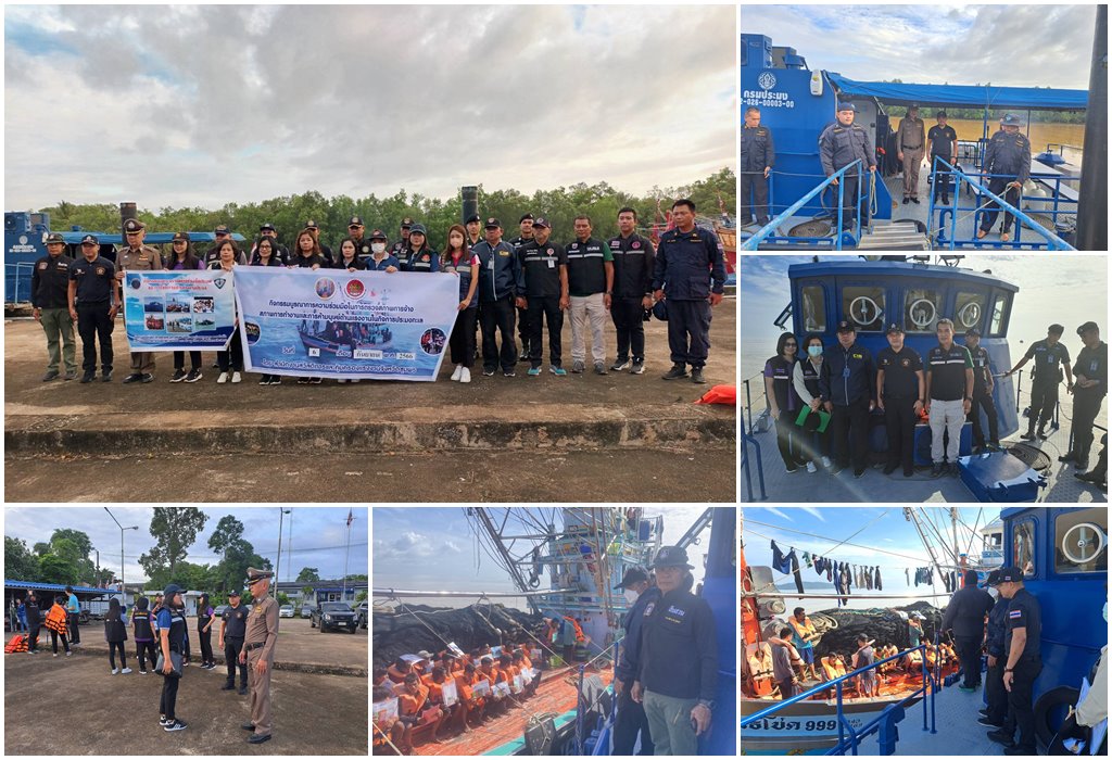 ร่วมกับ คณะทำงานบูรณาการความร่วมมือในการตรวจสภาพการจ้าง สภาพการทำงาน และการค้ามนุษย์ด้านแรงงานในกิจการประมงทะเล ตามคำสั่งจังหวัดชุมพรที่ 4038/2562 ลงวันที่ 22 พฤศจิกายน 2562