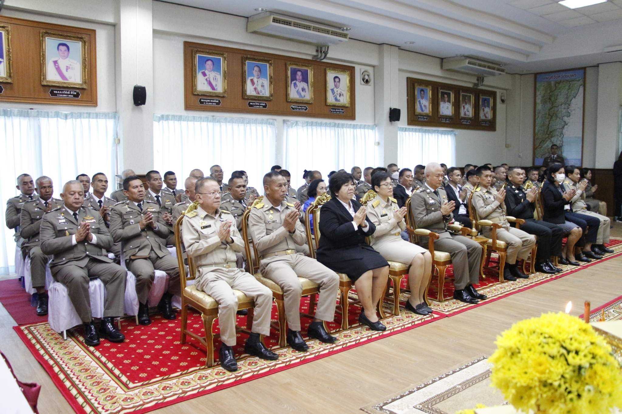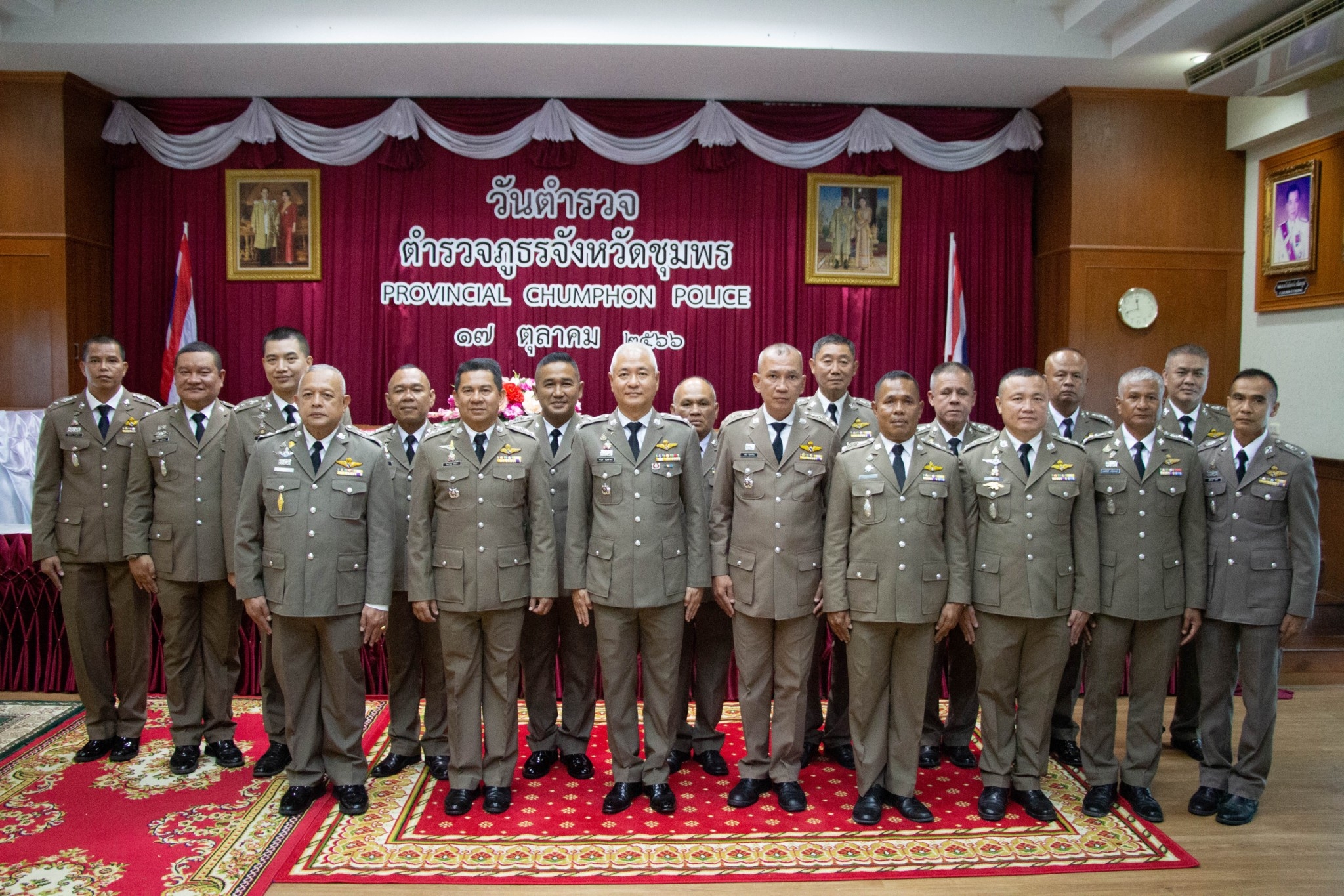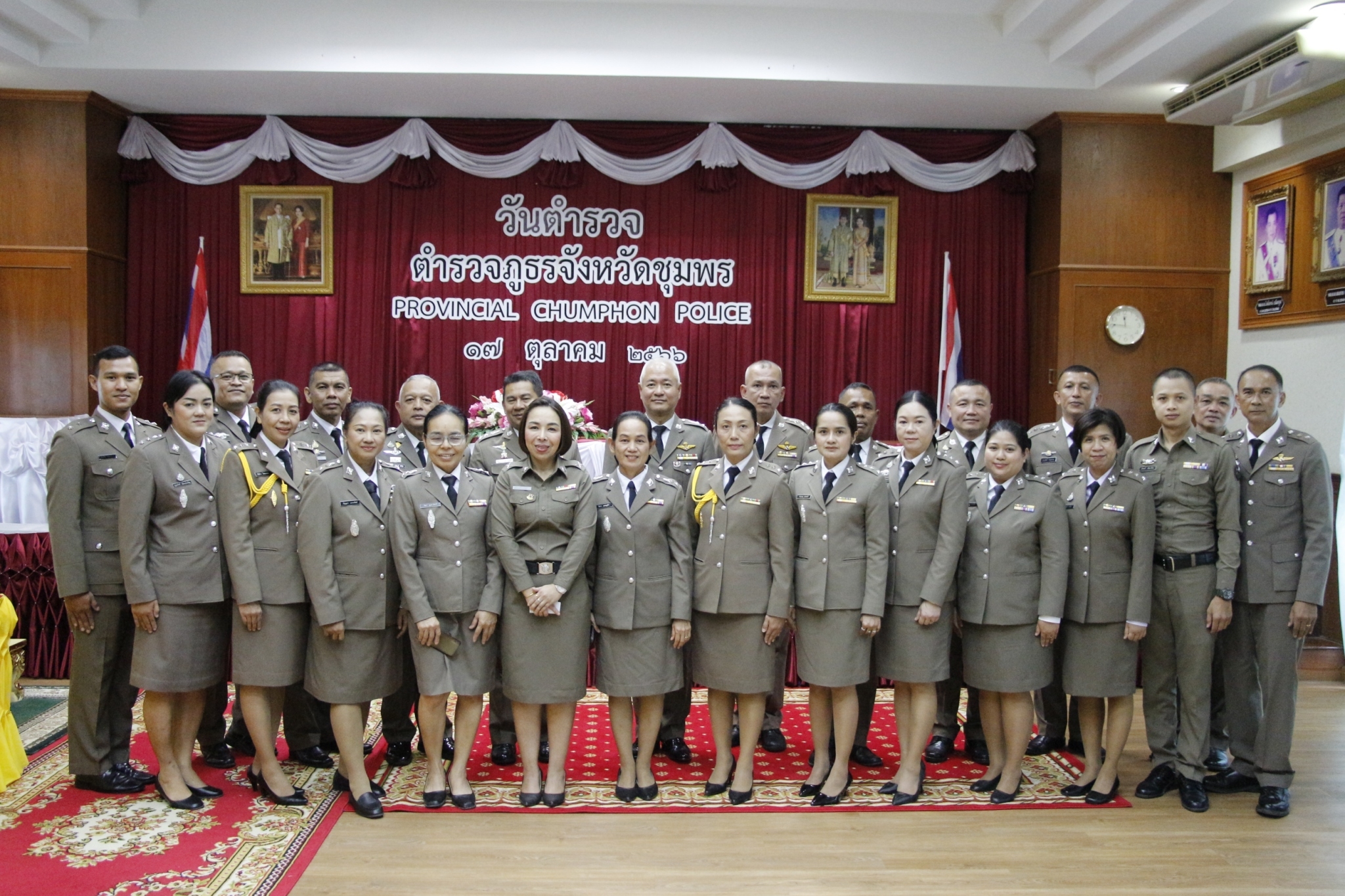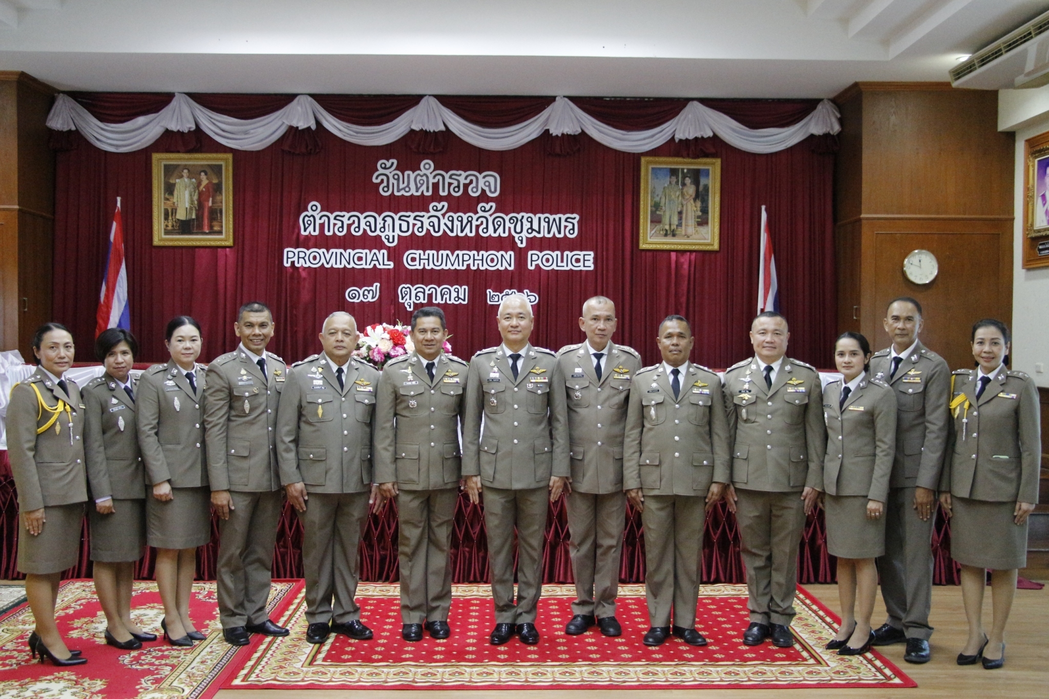 โดยมี นายวิสาห์ พูลศิริรัตน์ ผู้ว่าราชการจังหวัดชุมพร, น.ส.รังสิมา ลัธธนันท์ ผู้พิพากษาหัวหน้าศาลจังหวัดชุมพร, พล.ต.สุรเทพ หนูแก้ว ผบ.มทบ.44, ร.ต.อ.หญิง สวนิต สรางคุณห์ อัยการจังหวัดคดีเยาวชน และครอบครัวจังหวัดชุมพร, พล.ต.ต.อารยะพันธุ์ พุกบัวขาว นายกสมาคมตำรวจ สาขาชุมพร,กต.ตร.จังหวัดชุมพร, หน.สภ.ในสังกัด และ ข้าราชการตำรวจฝ่ายอำนวยการ, กก.สืบสวน ฯ และ กลุ่มงานสอบสวน เข้าร่วมพิธีโดยพร้อมเพรียงกัน ณ ภ.จว.ชุมพร โดยในวันนี้มีพิธีการ ดังนี้