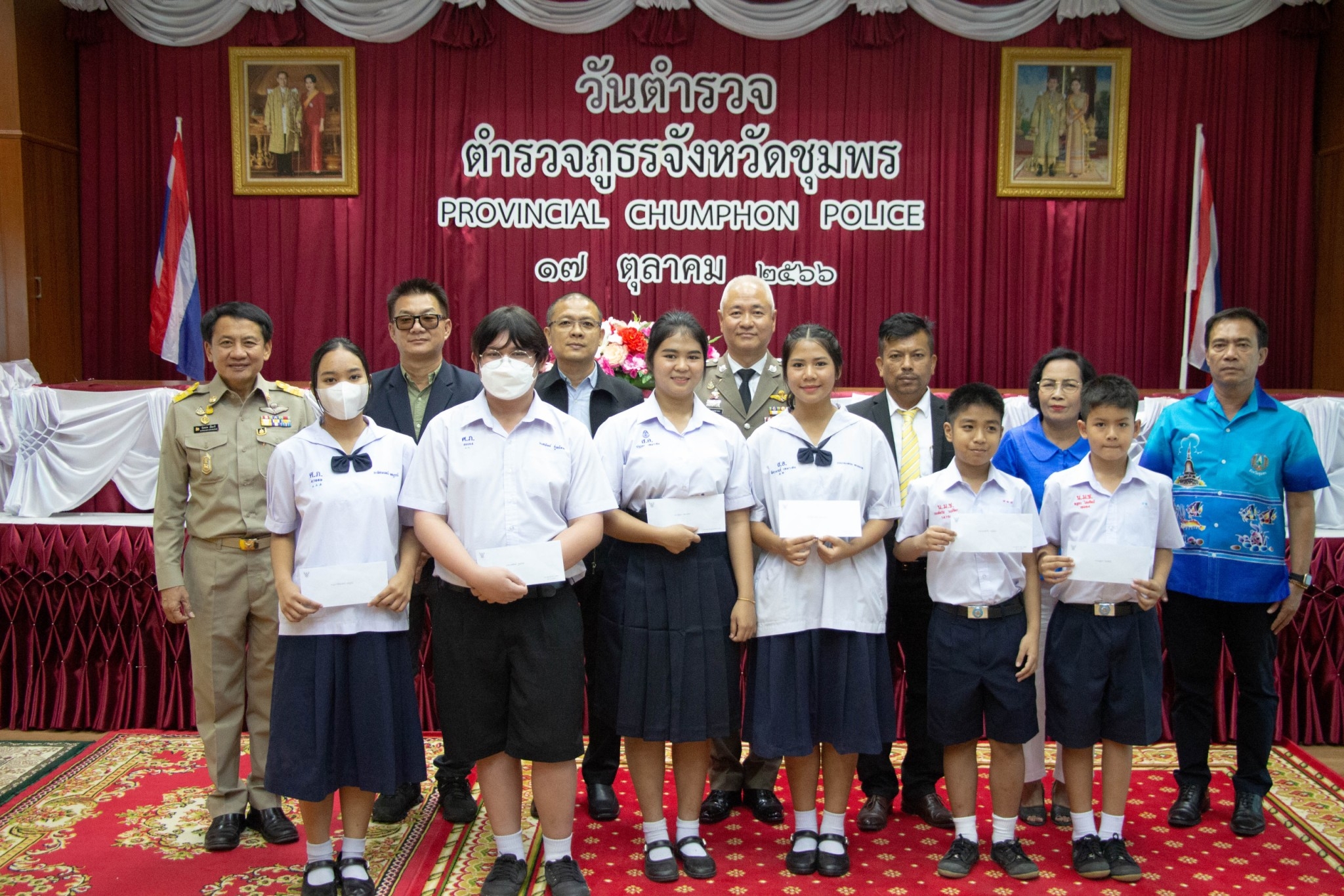 (*)มอบทุนการศึกษาให้แก่บุตรธิดาข้าราชการตำรวจ ซึ่งได้รับการสนับสนุนทุนการศึกษาจาก สอ.ตำรวจภูธรจังหวัดชุมพร จำกัด, กต.ตร.จังหวัดชุมพร และสมาคมตำรวจสาขาชุมพร จำนวน 30 ทุน