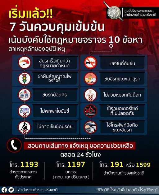 เพื่อความปลอดภัยของทุกคนบนท้องถนน ตำรวจเน้นบังคับใช้กฎหมายจราจร 10 ข้อหา ซึ่งเป็นสาเหตุหลักของอุบัติเหตุ