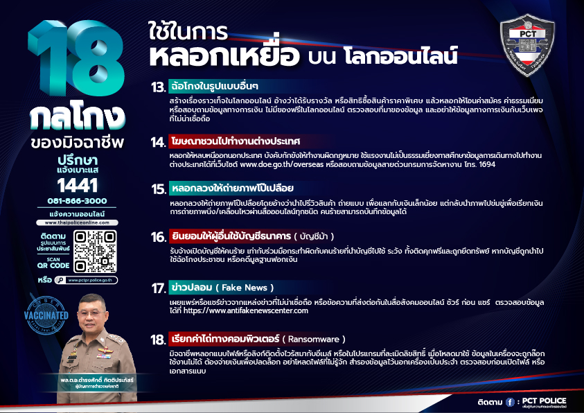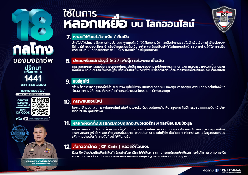 18 กลโกงของมืออาชีพ 21 ตุลาคม 2565 by admin / ข่าวประชาสัมพันธ์ 18 กลโกงของมืออาชีพใช้ในการหลอกเหยื่อบนโลกออนไลน์ FacebookFacebookXXLINELine