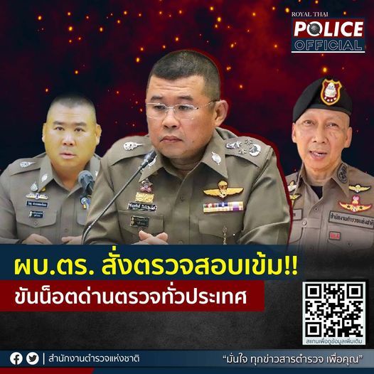 ผบ.ตร. สั่งเข้ม!! ขันน็อตด่านตรวจทั่วประเทศ ให้เป็นมาตรฐาน โปร่งใส ตรวจสอบได้ สั่งลงดาบหากละเลย มอบ