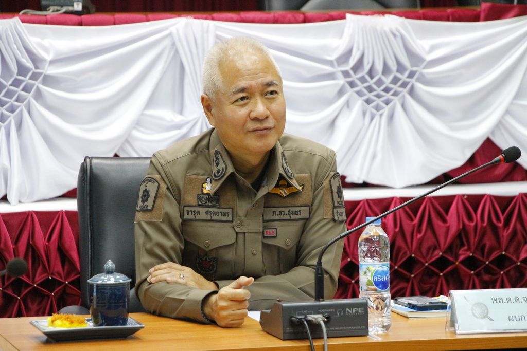 พล.ต.ต.จารุต ศรุตยาพร ผบก.ภ.จว.ชุมพร ร่วมพิธีเปิดการรณรงค์ “ผนึกกำลังร่วมใจ ต้านภัยไซเบอร์ ไม่เชื่อ ไม่รับ ไม่โอน รู้ทันกลโกง”